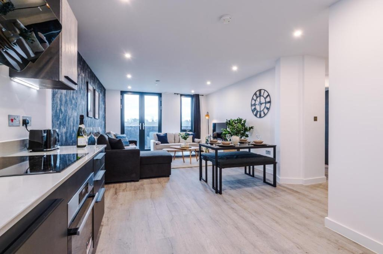 Each apartment is crafted with the finest materials, offering open-plan living areas, high-spec kitchens with Silestone quartz countertops, and state-of-the-art appliances. Bathrooms feature Italian porcelain tiles and premium sanitaryware, creating a refined living experience. Apartments are designed to flood with natural light, enhancing residents' well-being and connecting them with the beauty of their surroundings.