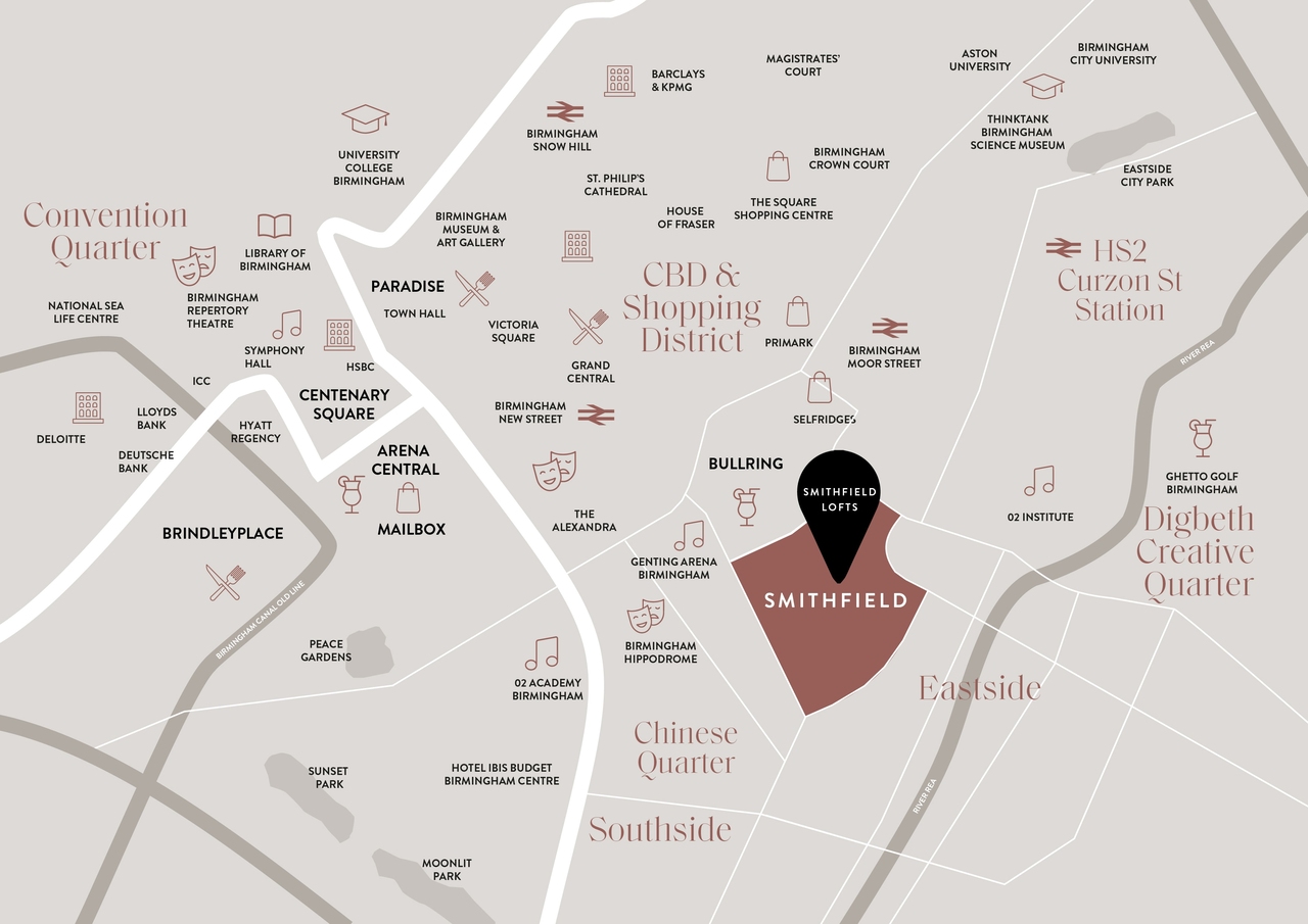 Currently the UK’s strongest investment city in the country, Birmingham’s profile will grow exponentially in the coming years, much of this activity centred around the new ‘city core’ of Smithfield. Smithfield will be a dynamic place with something for everyone. At its heart will be the new market alongside a festival square and new cultural spaces, business and leisure spaces, including hotels, cafés, restaurants and bars.