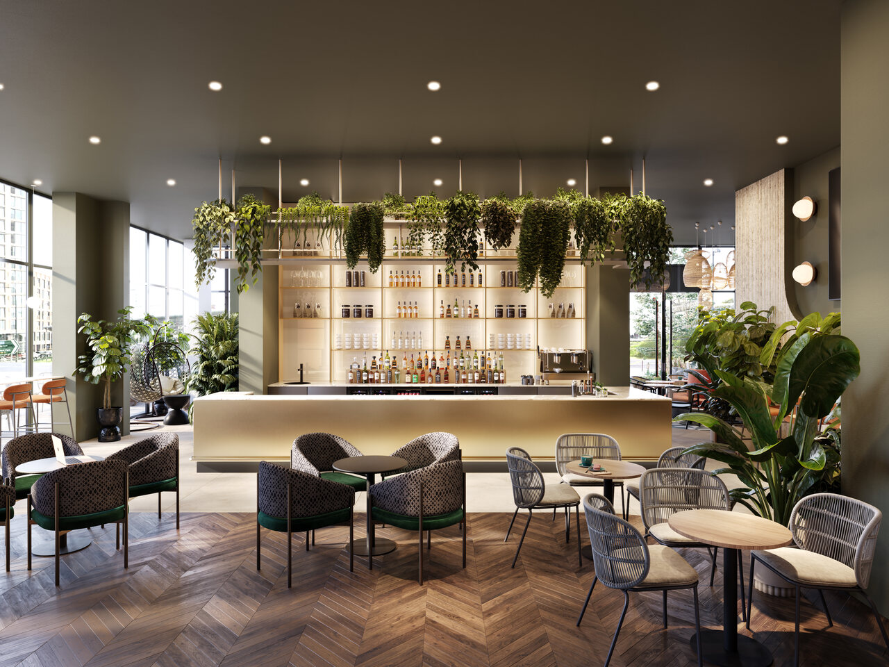 - Gym, co-working spaces, and private dining areas